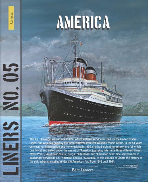 The S.S. 'America' was an ocean liner which entered service in 1940 for the United States Lines. She was designed by the famous naval architect William Francis Gibbs. In the 54 years between her introduction and her wrecking in 1994, she had eight different owners (of which one twice) and sailed under the names of 'America' (carrying this name three different times), 'West Point', 'Australis', 'Italis', 'Noga', 'Alferdoss' and 'American Star'. She served most in passenger service as S.S. 'America' and S.S. 'Australis'. In this number of Liners the story of this remarkable ship. This book presents an overview of the development and operational use of the 'S.S. 'America' ocean liner with many photos and illustrations from 1940 until 1964.