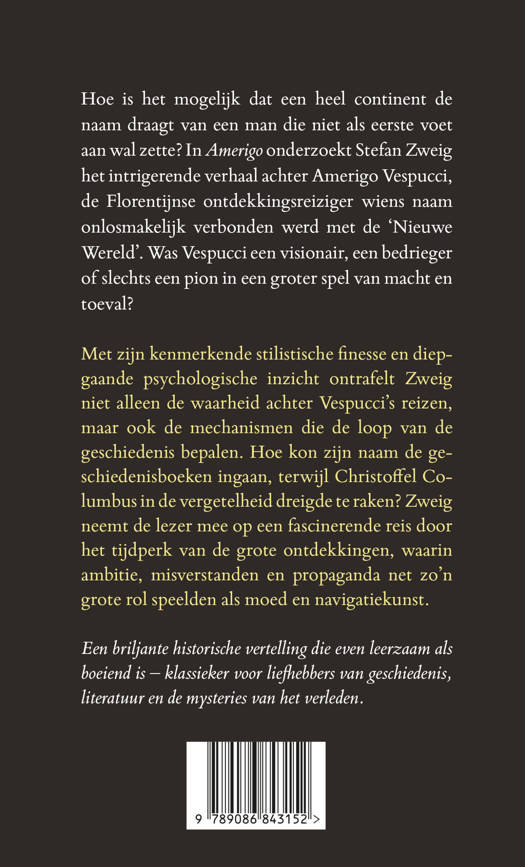 Hoe is het mogelijk dat een heel continent de naam draagt van een man die niet als eerste voet aan wal zette? In Amerigo onderzoekt Stefan Zweig het intrigerende verhaal achter Amerigo Vespucci, de Florentijnse ontdekkingsreiziger wiens naam onlosmakelijk verbonden werd met de ‘Nieuwe Wereld’. Was Vespucci een visionair, een bedrieger of slechts een pion in een groter spel van macht en toeval?