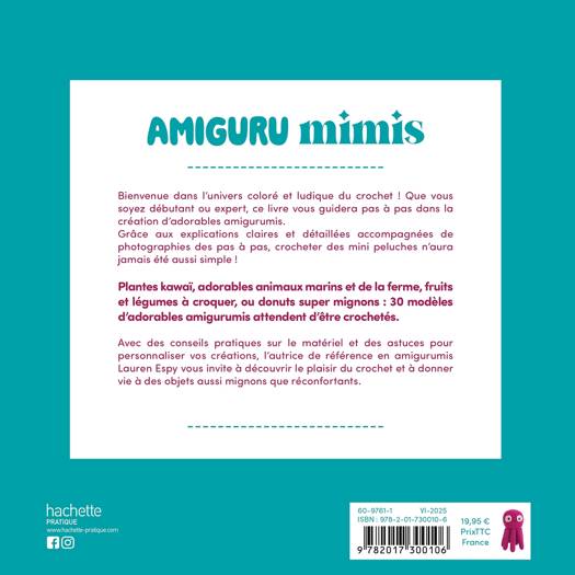 Bienvenue dans l’univers coloré et ludique du crochet ! Que vous soyez débutant ou expert, ce livre vous guidera pas à pas dans la création d’adorables amigurumis. Grâce aux explications claires et détaillées accompagnées de photographies des pas à pas, crocheter des mini peluches n’aura jamais été aussi simple !