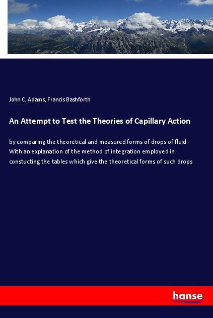 An Attempt to Test the Theories of Capillary Action - by comparing the theoretical and measured forms of drops of fluid - With an explanation of the method of integration employed in constucting the tables which give the theoretical forms of such drops is an unchanged, high-quality reprint of the original edition of 1883. Hansebooks is editor of the literature on different topic areas such as research and science, travel and expeditions, cooking and nutrition, medicine, and other genres. As a publisher we focus on the preservation of historical literature. Many works of historical writers and scientists are available today as antiques only. Hansebooks newly publishes these books and contributes to the preservation of literature which has become rare and historical knowledge for the future.