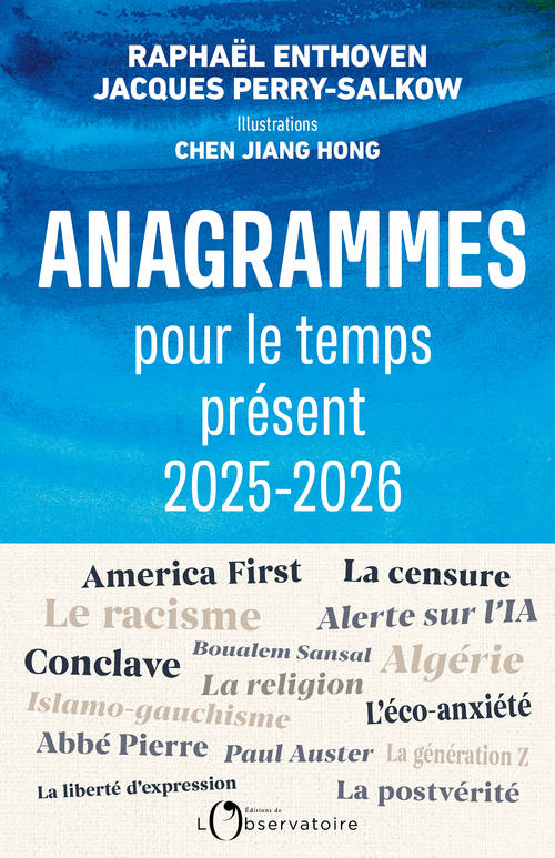 Dans ce nouveau recueil d’anagrammes pince-sans-rire, Raphaël Enthoven et Jacques Perry-Salkow scrutent les tumultes de récente avec leur talent habituel : chute de Bayrou, victoire de Trump, tragédie de Mayotte, tensions au Moyen-Orient, censure numérique chinoise, scandales religieux…