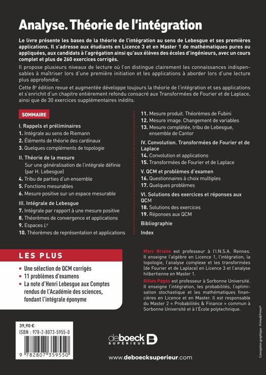 Cette 8e édition augmentée développe encore les applications de la théorie de l’intégration et y ajoute un nouveau chapitre consacré à la Transformée de Laplace ainsi que 30 exercices supplémentaires inédits.