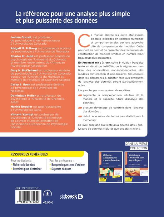 Ce manuel aborde les outils statistiques de base exploités en sciences humaines et comportementales par une approche dite de comparaison de modèles. Cette perspective permet de présenter des techniques de construction de modèles limitées en nombre mais