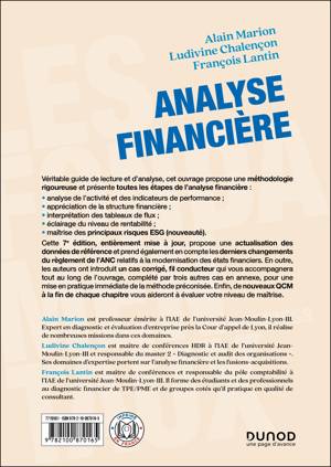 Véritable guide de lecture et d’analyse, cet ouvrage propose une méthodologie rigoureuse et présente toutes les étapes de l’analyse financière :