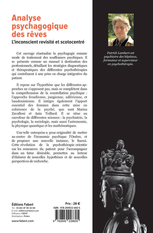 Cet ouvrage réactualise la psychagogie comme mode de traitement des souffrances psychiques. Il se présente comme un manuel à destination des professionnels, détaillant les stratégies diagnostiques et thérapeutiques des différentes psychothérapies qui contribuent à une prise en charge intégrative du patient. Il repose sur l'hypothèse que les différentes approchent ne s'opposent pas, mais se complètent dans la compréhension de la constellation psychique: l'approche freudienne, jungienne, adlérienne, et baudouinienne. Il intègre également l'apport essentiel des femmes dans cette mise en cohérence de la psyché, que sont Marisa Zavalloni et Ania Teillard. Il se situe au carrefour de différentes sciences, la psychiatrie, la psychologie, la sociologie, mais aussi l'astronomie, la physique quantique et les mathématiques. Une telle entreprise a pour originalité de mettre au centre de l'économie psychique l'Ombre, et de proposer une nouvelle instance, le Sursoi. Une telle révolution de la psychothérapie orientée sur les ressources du patient pour l'accompagner dans un futur désirable, permettra au lecteur d'élaborer de nouvelles hypothèses et de nouvelles perspectives de recherche. Résumés des principaux sujets abordés dans le livre. - La structure de l’appareil psychique : Depuis les topiques freudiennes, de nouvelles instances psychiques ont vu le jour, de Karl Gustav JUNG à Charles BAUDOUIN. Une actualisation de cette psyché ainsi dessinée s’avère nécessaire. Un parallélisme est fait à cette occasion avec la cosmogonie hindouiste si chère à Jung. L’analyse de l’appareil psychique se fait par étapes, de l’inconscient individuel à l’inconscient collectif, instance par instance, en passant par l’environnement intérieur de Marisa ZAVALLONI, afin de cartographier la constellation psychique. L’occasion m’est ainsi donnée pour proposer une instance supplémentaire, le Sursoi. - L’analyse de l’appareil psychique : Elle se fait en conscience modifiée ; c’est l’occasion d’aborder de façon critique la technique ericksonnienne. Le déroulement d’une séance est détaillé pour servir de guide d’entretien de cette analyse duale. Dans ce chapitre est décrit l’apport d’Alfred ADLER dans la compréhension des sources d’énergie de la psyché. Le nouveau concept, celui du Sursoi est analysé dans le détail. - La cosmogonie psychique : Elle permet d’accéder par la symbolique à une meilleure représentation de cette constellation, pour en faciliter la compréhension ; - Le bilan structurel et dynamique : Ce bilan est une étape essentielle pour aller chercher dans l’inconscient ce qui ne se manifeste pas spontanément au travers du matériel onirique spontané, afin d’aboutir à une description exhaustive des instances. - Les ponts avec la vie réelle : Les ponts complètent cette cartographie en y introduisant l’environnement qui interagit avec la psyché. Ce paragraphe décrit ces interactions et leurs enjeux dans le fonctionnement psychique. - Les correspondances anatomo-psychologiques : L’anatomie du système nerveux central est brièvement abordée à travers quelques correspondances entre structure et instance psychique. Il en est fait de même avec le fonctionnement du cerveau, par quelques exemples de neurotransmetteurs comme media psychodynamiques. - Le dysfonctionnement dans la mobilisation des énergies : Les éléments qui permettent de poser le diagnostic clinique sont décrits. Cette étape révèle l’origine des souffrances psychiques du sujet. - Les actions thérapeutiques : Elles illustrent ce qu’est la psychagogie, étymologiquement l’accompagnement de l’âme, ou l’aide au cheminement de vie. Ce chapitre introduit la notion de tendance, fonction variable de l’instance, sur laquelle le thérapeute peut agir. - L’action en tant que mobilisation des énergies : L’approche thérapeutique d’Hippolyte BERNHEIM illustre l’utilisation de la suggestion comme outil thérapeutique. Différentes modalités d’actions sont envisagées, ce qui donne lieu à une classification des évènements psychiques en fonction des degrés de conscience. - La métaphore de la mer : Il s’agit d’une mise en scène de la psyché afin de comprendre par analogie sa psychodynamique. - Les complexes : Un cas pratique psychopathologique permet de mettre en évidence la supériorité de l’approche intégrative sur les approches classiques. - La phylogénèse des tendances : Ce chapitre montre comment les étapes de développement de la psyché lors de l’évolution de l’être humain ont laissé des traces dans le fonctionnement abouti de celle-ci. - La typologie d’Ania Teillard : Elle permet un zoom sur le fonctionnement de la Persona de Jung, ouvrant des perspectives sur une psychagogie des plus précises dans son action thérapeutique. Un livre de 172 pages au prix de 28 €
