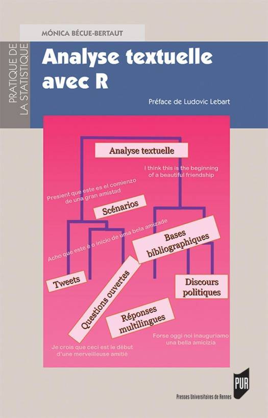 Dans les cinq premiers chapitres, un exemple de base, extrait d'une enquête par questionnaire qui comportait des questions ouvertes, est utilisé pour présenter les diverses méthodes. Comme ces méthodes se complètent mutuellement, il est nécessaire de voir et comprendre ce que chacune d'elles apporte. Les concepts sont introduits de façon simple et rigoureuse avant qu'un exemple illustre très effectivement les points de théorie présentés. Le chapitre 6 reprend le volet multilingue de cette enquête et montre comment traiter simultanément des réponses en plusieurs langues. Finalement, le chapitre 7 offre quatre applications issues de problématiques très diverses (analyse d'un discours, analyse de tweets, analyse bibliographique, analyse d'un scénario de film).