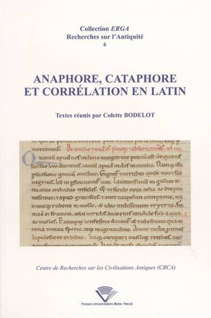 Le présent volume réunit les textes des communications présentées lors d'une journée d'étude de Linguistique Latine à l'Université Blaise Pascal de Clermont-Ferrand le 7 janvier 2003. Les phénomènes de corrélation, d'anaphore et de cataphore ou de reprise et d'annonce textuelle y sont abordés sous des jours très divers: la prosodie, la phonétique, la morphologie, la syntaxe, la sémantique, la pragmatique et la stylistique constituent autant de domaines d'investigation propres à fournir, dans une optique aussi bien diachronique que synchronique, des éclaircissements complémentaires sur les structures étudiées.