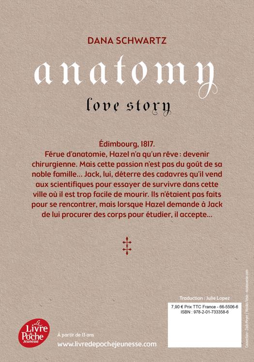 Édimbourg, 1817. Férue d'anatomie, Hazel n'a qu'un rêve : devenir chirurgienne. Mais cette passion n'est pas du goût de sa noble famille... Jack, lui, déterre des cadavres qu'il vend aux scientifiques pour essayer de survivre dans cette ville où il est trop facile de mourir. Ils n'étaient pas faits pour se rencontrer, mais lorsque Hazel demande à Jack de lui procurer des corps pour étudier, il accepte...