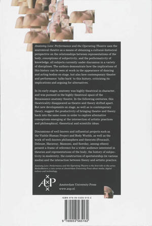 Gross anatomy, the study of anatomical structures that can be seen by unassisted vision, has long been a subject of fascination for artists. For most modern viewers, however, the anatomy lesson--the technically precise province of clinical surgeons and medical faculties--hardly seems the proper breeding ground for the hybrid workings of art and theory. We forget that, in its early stages, anatomy pursued the highly theatrical spirit of Renaissance science, as painters such as Rembrandt and Da Vinci and medical instructors like Fabricius of Aquapendente shared audiences devoted to the workings of the human body. Anatomy Live: Performance and the Operating Theatre, a remarkable consideration of new developments on the stage, as well as in contemporary writings of theorists such as Donna Haraway and Brian Massumi, turns our modern notions of the dissecting table on its head--using anatomical theatre as a means of obtaining a fresh perspective on representations of the body, conceptions of subjectivity, and own knowledge about science and the stage. Critically dissecting well-known exhibitions like Body Worlds and The Visible Human Project and featuring contributions from a number of diverse scholars on such subjects as the construction of spectatorship and the implications of anatomical history, Anatomy Live is not to be missed by anyone with an interest in this engaging intersection of science and artistic practice.