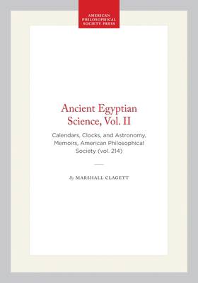 The 2nd of 3 vols. by Prof. Marshall Clagett on Ancient Egyptian Science. Contents: Part I: Intro. to Egyptian Calendars; Parker's Account of the Old Lunar Calendar; The Later Lunar Calendar; The Origin of the Civil Calendar; Sothic Dates & the Ebers Calendar; The Night Hours; Decanal Clocks; Transit Decanal Clocks; The Ramesside Star Clock; Outflow Water Clocks; Inflow Water Clocks; Shadow Clocks; Egyptian Sundials; Traces of a 24-hour Day with Equal Hours; Astronomical Ceilings & Other Monuments; The Ceiling of the Secret Tomb of Senmut; The Vaulted Ceiling of Hall K in Seti I's Tomb; Egyptian Zodiacs. Part II: Documents. Part III: Bibliography & Indexes. Part IV: Illustrations.