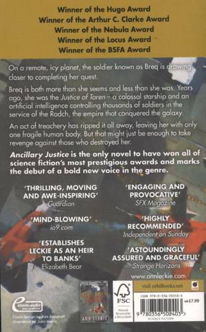 The record-breaking debut novel that won every major science fiction award, Ancillary Justice is the story of a warship trapped in a human body and her search for revenge.