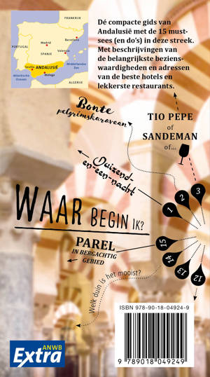 Beleef Andalusië met de compleet vernieuwde reisgids ANWB Extra Andalusië! Vergaap je aan burchten en paleizen, een van ’s werelds mooiste moskeeën, een landschap doordrenkt van historie, gezellige steden en een keuken om van te smullen.