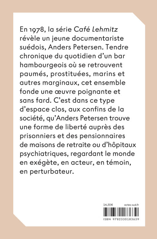 En 1978, la série Café Lehmitz révèle le nom d'un jeune documentariste suédois, Anders Petersen. Tendre chronique du quotidien d'un bar hambourgeois où se retrouvent paumés, prostituées, marins et autres marginaux, cet ensemble fonde une oeuvre poignante et sans fard. C'est dans ce type d'espace clos, aux confins de la société, qu'Anders Petersen trouve une forme de liberté auprès des prisonniers et des pensionnaires de maisons de retraite ou d'hôpitaux psychiatriques, regardant le monde en exégète, en acteur, en témoin, en perturbateur.