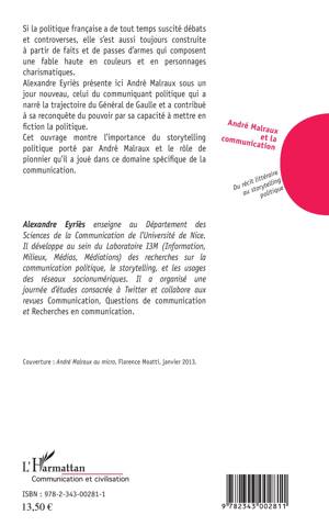 Alexandre Eyriès présente ici André Malraux sous un jour nouveau, celui du communiquant politique qui a narré la trajectoire du Général de Gaulle et a contribué à sa reconquête du pouvoir par sa capacité à mettre en fiction la politique. Cet ouvrage montre l'importance du storytelling politique porté par André Malraux et le rôle de pionnier qu'il a joué dans ce domaine spécifique de la communication.