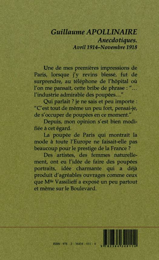 Une de mes premières impressions de Paris, lorsque j'y revins blessé, fut de surprendre, au téléphone de l'hôpital où l'on me pansait, cette bribe de phrase : « ... l'industrie admirable des poupées... »