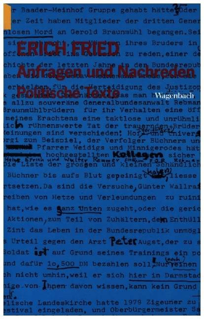 Die wichtigsten politischen Texte Erich Frieds, darunter zahlreiche unbekannte oder verschollene.Zusammengetragen aus längst vergriffenen Büchern, Anthologien, Rundfunkarchiven: Entstanden ist ein eindruckvolles Portrait des politischen Denkens von Erich Fried, von seinen frühen antistalinistischen Rundfunktexten und dem Statement »Warum lebe ich nicht in der Bundesrepublik?« von 1963, über Äußerungen zum deutschen (und österreichischen) Faschismus und zur Wetterlage des »Deutschen Herbstes« (1977), bis zu Fragen nach dem, was links sei, in Ost und West, oder was jüdische Identität bedeute - eingeschlossen die polemische, in Todesnähe formulierte Quintessenz der Büchnerpreis-Rede von 1987.