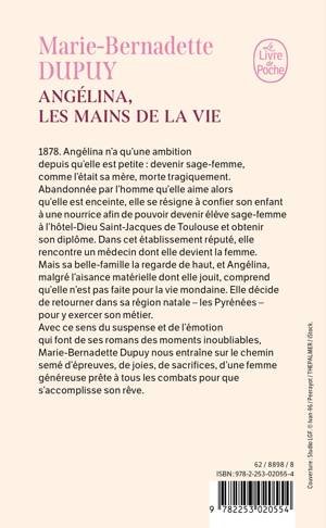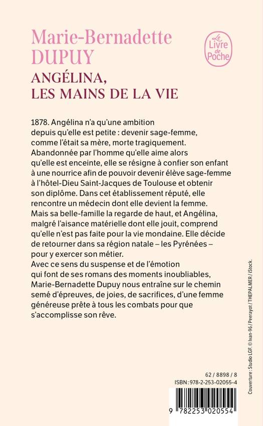 Pyrénées, 1878. Angélina n'a qu'une ambition depuis qu'elle est petite : devenir sage-femme, comme l’était sa mère, morte tragiquement. Abandonnée par l’homme qu’elle aimait alors qu’elle était enceinte, la jeune fille se résigne à confier son enfant à une nourrice afin de pouvoir devenir élève sage-femme à l'hôtel-Dieu Saint-Jacques de Toulouse et obtenir son diplôme. Dans cet établissement réputé, elle rencontre un médecin dont elle devient la femme. Mais sa belle-famille la regarde de haut, et Angélina, malgré l'aisance matérielle dont elle jouit, comprend qu'elle n'est pas faite pour la vie mondaine. Elle décide de retourner dans sa région natale pour y exercer son métier. Avec ce sens du suspense et de l’émotion qui font de ses romans des moments inoubliables, Marie-Bernadette Dupuy nous entraîne sur le chemin semé d’épreuves, de joies, de sacrifices, d’une femme généreuse prête à tous les combats pour que s’accomplisse son rêve.