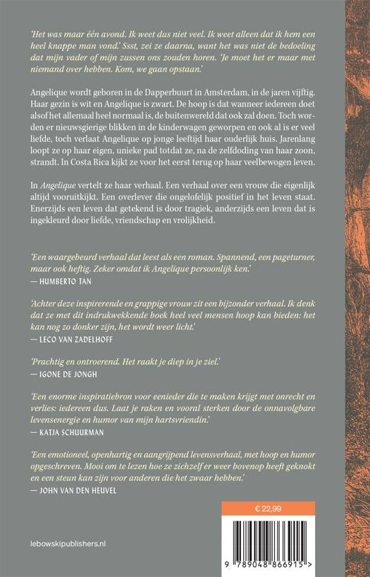 In Angelique vertelt ze haar verhaal. Een verhaal over een vrouw die eigenlijk altijd vooruitkijkt. Een overlever die ongelofelijk positief in het leven staat. Enerzijds een leven dat getekend is door tragiek, anderzijds een leven dat is ingekleurd door liefde, vriendschap en vrolijkheid.