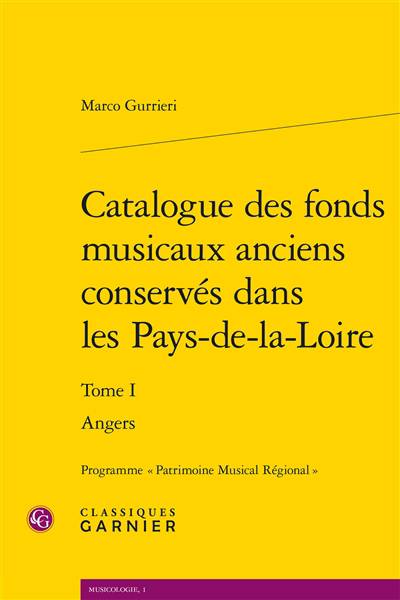 Ce catalogue, présentant le recensement complet des fonds musicaux anciens de la ville d'Angers, fait partie du programme « Patrimoine musical régional » soutenu par le ministère de la Culture et de la Communication, avec l'appui scientifique et technique du Département de la musique de la Bibliothèque nationale de France et du Centre d'études supérieures de la Renaissance de Tours. Ce recensement des sources musicales imprimées et manuscrites, de la Renaissance jusqu'à la première moitié du XIXe siècle, est composé de 374 notices principales et de 332 sous-notices. Une section finale, constituée de plusieurs index, fournit les outils nécessaires pour une recherche détaillée.