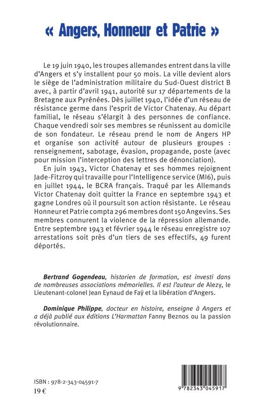 Le 19 juin 1940, les troupes allemandes s'installent à Angers. La ville devient, pendant 50 mois, le siège de l'administration militaire du Sud-Ouest district B. Victor Chatenay forme un réseau de résistance, au départ familial, qui prend le nom de Angers HP. Son activité : renseignement, sabotage, évasion, propagande, poste. Le réseau compta au total 296 membres, dont 150 Angevins, qui connurent la violence de la répression allemande. Le réseau enregistre, entre septembre 1943 et février 1944, 107 arrestations et 49 déportés.
