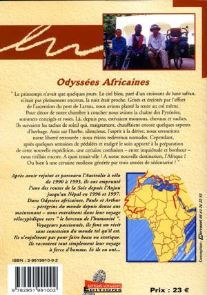 Dans Odyssées africaines, Arthur et Paule nous entraînent dans leur voyage vélocipédique vers " le berceau de l'humanité ". Voyageurs passionnés, ils font un récit sans concession du monde tel qu'il est. Ils n'enjolivent pas pour faire beau ou exotique. Ils racontent tout simplement leur voyage à force d'homme. Et ils en ont...