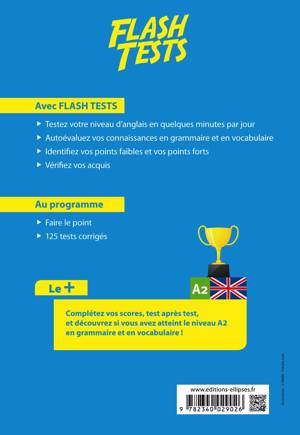 Cet ouvrage vous permettra de vérifier vos acquis en anglais et de vous entrainer pour atteindre le niveau A2 en grammaire et en vocabulaire. Il contient :