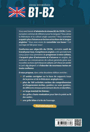Vous êtes lycéen, étudiant ou adulte ? Vous souhaitez atteindre le niveau B1-B2 en anglais et acquérir plus d’aisance en lecture, compréhension et expression écrites en anglais ? Vous souhaitez consolider vos bases et gagner en autonomie ? Cet ouvrage est l’outil qu’il vous faut.