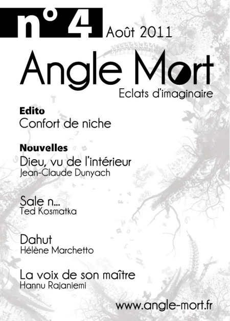 Le collectif Angle Mort est composé d’éditeurs, d’écrivains, de traducteurs et de scientifiques partageant une même conception de la science-fiction ; celle d’une méthode d’exploration de soi et de notre environnement. La revue numérique Angle Mort publie des nouvelles contemporaines, françaises ou traduites de l’anglais, qui font la science-fiction d’aujourd’hui, offrent un nouveau regard sur le monde et – c'est notre conviction – nous permet de mieux préparer demain.
