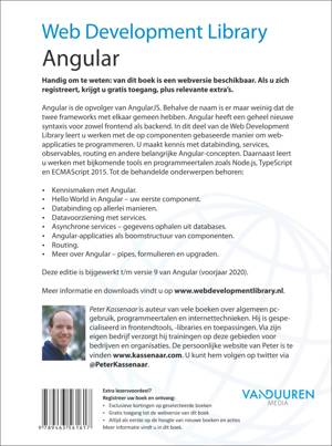 Angular is de opvolger van AngularJS. Behalve de naam is er maar weinig dat de twee frameworks met elkaar gemeen hebben. Angular heeft een geheel nieuwe syntaxis voor zowel frontend als backend. In dit deel van de Web Development Library leert u werken met de nieuwe, op componenten gebaseerde manier om webapplicaties te programmeren. U maakt kennis met de vernieuwde wijze van databinding, services, observables, routing en andere belangrijke Angular-concepten. Aan het einde gaan we kort in op het upgraden van AngularJS 1.x-applicaties naar Angular. Daarnaast leert u werken met bijkomende tools en programmeertalen zoals Node.js, TypeScript en ECMAScript 2015.