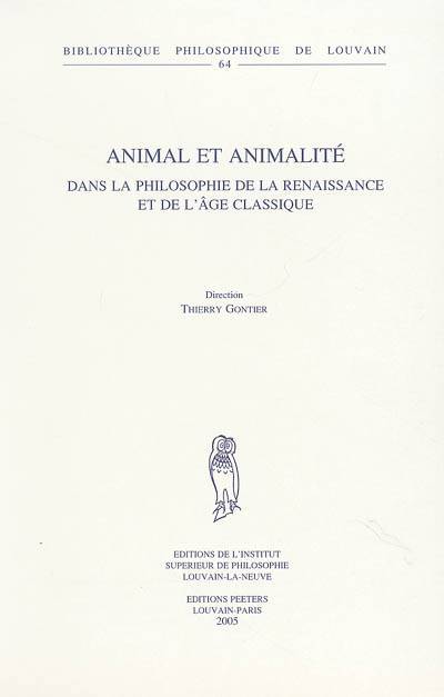 Nous voulons ici interroger en vis-a-vis deux mutations caracteristiques de la philosophie moderne dans sa periode d'elaboration - Renaissance et Age Classique: 1 / Le foisonnement, au XVIe et XVIIe siecles, des discours polemiques sur les animaux, leur nature, leurs facultes, leur destinee, etc. Quoiqu'elle s'alimente d'un fonds antique (Pline, Plutarque, Sextus Empiricus, Porphyre, etc.), cette polemique n'en reste pas moins profondement originale de par son mode argumentatif, ses enjeux, et son opposition a un schema anthropologico-zoologique issu d'Aristote. 2 / La promotion nouvelle des facultes animales, ou plus generalement de la part irrationnelle, de l'homme - constante que l'on retrouve dans les grands champs problematiques de la philosophie, qu'il s'agisse de la connaissance (articulation de l'aestimativa et de la ratio), de la morale (desinhibition et reevaluation du role des passions), de la politique (heuristique de la ferocitas), de l'anthropologie (recomposition des rapports entre l'animalitas et la ratio) et de la metaphysique (rupture avec l'ontologie hylemorphique aristotelicienne). Par dela ces mutations, une nouvelle pensee cynique se fait jour, dont les implications, metaphysiques, epistemologiques, ethiques et politiques peseront lourd dans l'evolution de la philosophie moderne, et pour notre comprehension actuelle de l'homme. Ont participe a ce volume Francesco Adorno, Pierre Caye, Luc Foisneau, Thierry Gontier, Jean-Luc Guichet, Jean-Paul Larthomas, Thierry Menissier, Enrico Nuzzo, Nicole Panichi, Francesco Piro, Carole Talon-Hugon et Arnaud Zucker.