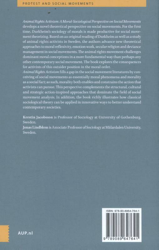 We're in an era of ever increasing attention to animal rights, and activism around the issue is growing more widespread and prominent. In this volume, Jonas Lindblom and Kerstin Jacobsson use the animal rights movement in Sweden to offer the first analysis of social movements through the lens of Emile Durkheim's sociology of morality. By positing social movements as essentially a moral phenomenon-and morality itself as a social fact-the book complements more structural, cultural, or strategic action-based approaches, even as it also demonstrates the continuing value of classical sociological approaches to understanding contemporary society.