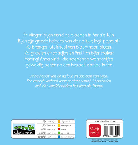 Anna houdt van de natuur, en dus ook van bijen. Een leerrijk verhaal voor peuters vanaf 30 maanden, met de wereld rondom het kind als thema.