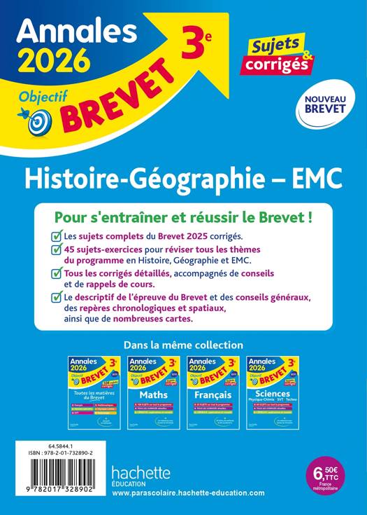 Annales Brevet 2026 - Histoire-géo-EMC 3e - sujets et corrigés