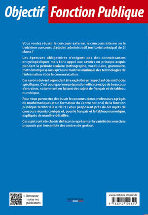 Cet ouvrage propose une préparation efficace, avec 50 sujets d'écrits de concours récents corrigés et 7 sujets d'admission expliqués de manière détaillée.