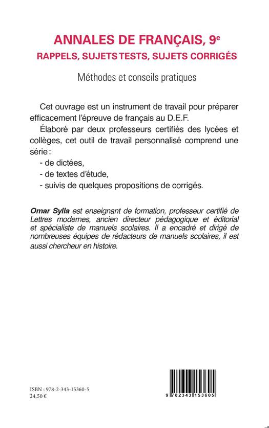 Cet ouvrage est un instrument de travail pour préparer efficacement l'épreuve de français au D.E.F. Elaboré par deux professeurs certifiés des lycées et collèges, cet outil de travail personnalisé comprend une série de dictées et de textes d’étude, suivis de quelques propositions de corrigés.