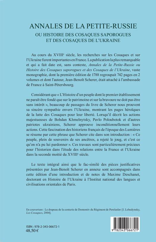 Au cours du XVIIIe siècle, les recherches sur les Cosaques et sur l'Ukraine furent importantes, et cet ouvrage, dont la première édition date de 1788, est sans conteste la publication la plus remarquable. Il est le premier ouvrage produit en français consacré à l'Histoire globale de l'Ukraine. Il reflète l'intérêt de l'auteur, attaché à l'ambassade de France à Saint-Petersbourg, pour le sort du peuple Ukrainien et son désir de faire comprendre l'Ukraine à l'Occident, ainsi que les moyens de son développement historique et sa relation avec les pays voisins.