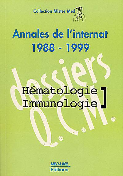 Recueil de questions et leurs réponses (QCM et dossiers médicaux) concernant d'une part l'hématologie : transfusion sanguine, orientation diagnostique, anémies, coagulation, hémopathies malignes, anomalies de l'hémogramme, et d'autre part l'immunologie : immunité humorale, immunité cellulaire, greffes, hypersensibilité, complexe majeur d'histocompatibilité, complément...