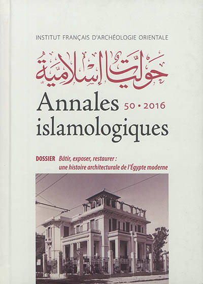 English summary: The 50th issue of the Annales islamologiques includes a folder and varia, as was the case of the preceding issues. The folder, entitled "Batir, exposer, restaurer: une histoire architecturale de l'Egypte moderne", is edited by Mercedes Volait. An introduction and six articles explore the large variety of contexts in which architecture bloomed between the mid-19th century and the 1960s. This period witnessed the reinvention of Coptic and Islamic tradition as well as the development of building activities through orders from companies (e.g. Suez Canal Company), the aristocracy (e.g. 'Imad al-Din street in Cairo) or later on the state (e.g. fairs and exhibitions). Articles are accompanied by a rich and mostly unpublished iconography. Five articles of varia, in French, in English and in Arabic, complete this issue. Three of them publish sources: two arabic papyri from the end of the 8th or the 9th century, and a paper stemming from the documents of al-Haram al-Sarif, which sheds light on the situation of the non-Muslims in Mamluk Jerusalem. The two other articles deal with the science of Hadith in the medieval period, and with musicians and singers in Ibn Iyas' chronicle (beginning of the 16th century). French description: Le volume 50 des Annales islamologiques comprend, comme les precedents, un dossier et des varia. Le dossier, intitule " Batir, exposer, restaurer: une histoire architecturale de l'Egypte moderne ", a ete coordonne par Mercedes Volait. Son introduction et ses six articles explorent la grande variete des contextes dans lesquels s'est epanouie l'architecture entre le milieu du XIXe siecle et les annees 1960, de la reinvention de la tradition copte et islamique a la commande patronale (Compagnie du canal de Suez), aristocratique (rue 'Imad al-Din au Caire) ou plus tard nationale (foires et expositions). Les articles sont accompagnes d'une riche iconographie, pour une large part inedite. Cinq articles de varia, en francais, en anglais et en arabe, completent ce numero. Trois d'entre eux publient des sources: deux papyrus arabes de la fin du VIIIe ou du IXe siecle, et un papier issu des documents du Haram Sarif, qui eclaire sur la situation des non-Musulmans dans la Jerusalem mamelouke. Les deux autres articles portent sur la science du Hadith a l'epoque medievale, et sur les musiciens et chanteurs dans la chronique d'Ibn Iyas' (debut XVIe siecle).