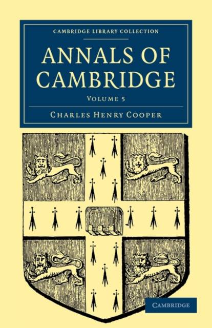 Charles Henry Cooper charted over half a millennium of life at Cambridge in the five volumes of the Annals of Cambridge. Cooper practised as a solicitor in Cambridge, and was also town clerk from 1849 until his death in 1866. He was a keen historian and devoted a great deal of time to archival research, particularly into local history. Drawing on extensive public and private records, including petitions, town treasurers' accounts, restoration records, death certificates, legal articles and letters to ruling royalty, Cooper compiled a comprehensive chronological history of Cambridge, documenting the 'city of scholars' through its tumultuous political and religious growing pains. It was published in the face of considerable opposition from the university authorities, but was eventually acclaimed as an authoritative account. Volume 5 was published posthumously in 1908 and contains the annals for 1850-1856, together with additions, corrections and an index for the first four volumes.