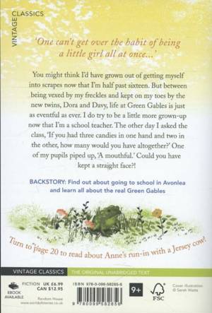 You might think I'd have grown out of getting myself into scrapes now that I'm half past sixteen. But between being vexed by my freckles, taunted by a brazen Jersey cow and kept on my toes by the new twins, Dora and Davy, life at Green Gables is just as eventful as ever. I do try to be a little more grown-up now that I'm a school teacher.