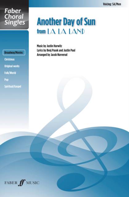 Another Day of Sun is the opening song from the hugely popular musical film La La Land. This artist-approved choral version has been arranged for soprano, alto and combined men's voices with a straight-forward piano accompaniment. It forms part of the Faber Choral Singles series and is ideal for choirs of any ability.