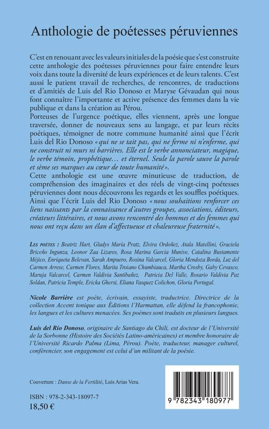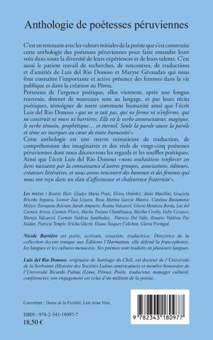 C'est en renouant avec les valeurs initiales de la poésie que s'est construite cette anthologie des poétesses péruviennes pour faire entendre leurs voix dans toute la diversité de leurs expériences et de leurs talents. C'est aussi le patient travail de recherches, de rencontres, de traductions et d'amitiés de Luis del Rio Donoso et Maryse Gévaudan qui nous font connaître l'importante et active présence des femmes dans la vie publique et dans la création au Pérou. Porteuses de l'urgence poétique, elles viennent, après une longue traversée, donner de nouveaux sens au langage, et par leurs récits poétiques, témoigner de notre commune humanité ainsi que l'écrit Luis del Rio Donoso « qui ne se tait pas, qui ne ferme ni n'enferme, qui ne construit ni murs ni barrières. Elle est le verbe annonciateur, magique, le verbe témoin, prophétique et éternel. Seule la parole sauve la parole et sème ses marques au coeur de toute humanité ».