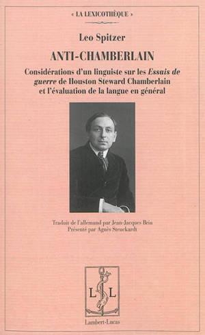 L'Anti-Chamberlain (1918) dévoile les soubassements d'un nationalisme linguistique dont Spitzer, dans Fremdwörterhatz und Fremdvölkerhass (Traque des mois étrangers, haine des peuples étrangers), attaquait la même année une autre forme : le purisme linguistique. L'Allemagne défaite, l'Empire austro-hongrois démantelé. Houston Stewart Chamberlain devient un des maîtres à penser de Hitler et du national-socialisme, tandis que le Juif Léo Spitzer quitte Vienne, puis l'Europe. La traduction d'Anti-Chamberlain par Jean-Jacques Briu et sa présentation par Agnès Steuckardt, après Traque des mots étrangers, haine des peuples étrangers (Limoges, Lambert Lucas, 2013). font découvrir les enjeux idéologiques du combat livre par le jeune linguiste.