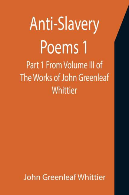 The book, "" Anti-Slavery Poems 1. Part 1 From Volume III of The Works of John Greenleaf Whittier "", has been considered important throughout the human history, and so that this work is never forgotten we have made efforts in its preservation by republishing this book in a modern format for present and future generations. This whole book has been reformatted, retyped and designed. These books are not made of scanned copies and hence the text is clear and readable.