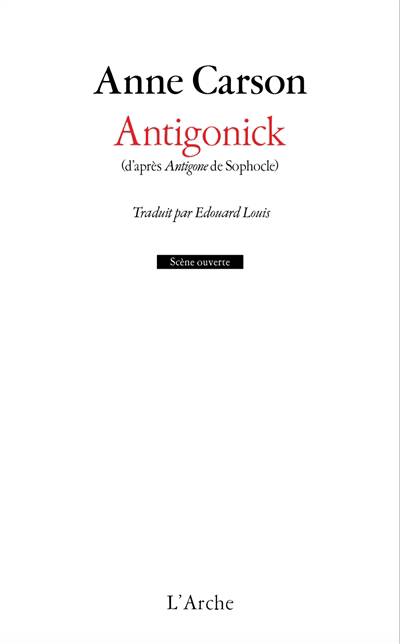 Antigone est la tragédie antique et moderne par excellence. Celle de la révolte et du refus de l’autorité aveugle. Antigone brave l’interdit de Créon, qui incarne la machine broyeuse de l’État. Elle exige pour son frère Polynice une digne sépulture et se réfère aux dieux, à d’autres lois, bien plus puissantes et plus anciennes que l’arbitraire des hommes. Carson raccourcit la fable et la radicalise. Son adaptation s’illustre par son humour et l’audace des commentaires qu’elle insère. Son propos se resserre autour du deuil et de la question de la responsabilité morale à honorer la mémoire du frère défunt.