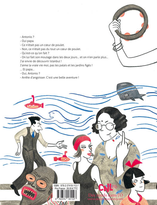 Né à Naples en 1894, Antonio Caffiero a très tôt manifesté un goût marqué pour les histoires qu’elles soient réelles ou imaginaires. L’aventure principale, qui prend à certains moments une allure de thriller, est celle du moulage en vermeil du cœur du sultan ottoman Abdelmecit, qu’Antonio et son père ont réalisé, à la demande de son fils, le sultan Mehmet V Resad. Ses aventures, Antonio les vit ou les imagine sur fond de plusieurs conflits – guerre italo – grecque, 1ère guerre mondiale, guerre gréco - turque, démembrement de l’empire ottoman, guerre d’Abyssinie, deuxième guerre mondiale – qu’il traverse avec un détachement qui s’accentue au fil des années. Il s’attache en revanche profondément à toutes les villes méditerranéennes où il s’installe : Petit délinquant à Naples, orfèvre du sultan à Istanbul, latin lover de la chanteuse Roza Eskanazi au Pirée, principal fournisseur d’argenterie des grands hôtels à Beyrouth, il promène sa silhouette nonchalante et son regard à la fois curieux et désabusé dans les rues de ces villes-monde où il se sent chez lui. Allergique à la pensée unique, il sera mal vu des communautés italiennes de Beyrouth et d’Istanbul parce qu’il n’adhère pas au fascisme, mais s’engagera quand même comme cuisinier dans la guerre d’Abyssinie, pour fuir une maîtresse qui le harcèle. Maria, son épouse dont il est fou amoureux, parce qu’il a rêvé d’elle, avant même de la rencontrer, est la seule constante de sa vie. Rythmé par une voix off qui n’est autre que celle de son arrière-petite-fille, l’autrice Michèle Standjofski, le récit prend toute sa dimension grâce au graphisme réalisé aux crayons de couleur.