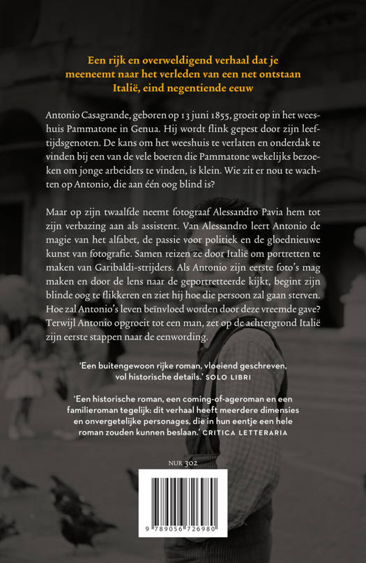 Maar op zijn twaalfde wordt hij tot zijn verbazing door fotograaf Alessandro Pavia als assistent gekozen. Samen reizen ze door Italië, om portretten te maken van Garibaldi-strijders. Als Antonio zijn eerste foto’s mag maken en door de lens naar de geportretteerde kijkt, begint zijn blinde oog te flikkeren en ziet hij hoe die persoon zal gaan sterven. Hoe zal Antonio’s leven beïnvloed worden door deze vreemde gave? Op de achtergrond zet Italië zijn eerste stappen naar de eenwording van het land.