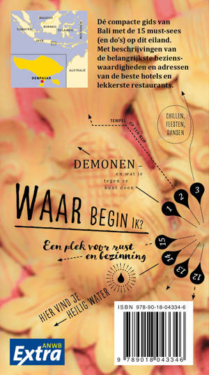 ANWB Extra reisgids Bali – Indonesië Beleef Bali met de compleet vernieuwde reisgids ANWB Extra Bali! Bali, een van de ongeveer 17.500 (!) eilanden van de Indonesische archipel behoort tot een van de beroemdste ter wereld. Dat komt vooral door zijn paradijselijke uiterlijk. Je raakt gefascineerd door religieuze rituelen, de vrolijke tempelfeesten en indrukwekkende landschappen. De ANWB Extra reisgids Bali biedt naast diverse wandelroutes en veel praktische tips over hotels en de cultuur ook 15 inspirerende bezienswaardigheden die je niet mag missen. Leer alles over de inwoners in het Bali museum, bezoek de Pura Taman Ayun tempel of beklim de Baturvulkaan.