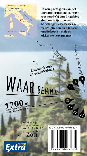 ANWB Extra reisgids Gardameer – Italië Beleef het Gardameer met de compleet vernieuwde reisgids ANWB Extra Gardameer! Prachtige stadjes, dorpen, bergen en stranden, alles komt samen aan het Gardameer. Het hele jaar door glinstert het water je in steeds andere kleurschakeringen tegemoet. De ANWB Extra reisgids Gardameer biedt naast veel praktische tips over campings, vakantiehuizen, hotels en vervoer ook 15 inspirerende bezienswaardigheden die je niet mag missen. Ga surfen in Torbole, wandel op de Monte Baldo of plan een dagje shoppen in Desenzano.