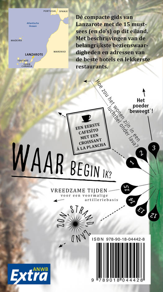 ANWB Extra reisgids Lanzarote – Spanje Beleef Lanzarote met de compleet vernieuwde reisgids ANWB Extra Lanzarote! Wandelen, zwemmen, duiken, fietsten, paardrijden. Of toch liever luieren aan het strand en uitstapjes maken naar ruige landschappen, het Spaanse eiland heeft iedereen wat te bieden. De ANWB Extra reisgids Lanzarote biedt naast veel praktische tips over campings, vakantiehuizen, hotels en vervoer ook 15 inspirerende bezienswaardigheden die je niet mag missen. Bezoek het wijnbouwgebied La Geria, ga ondergronds in de grotten van Cueva de los Verdes of dompel je onder in het nachtleven van hoofdstad Arrecife.